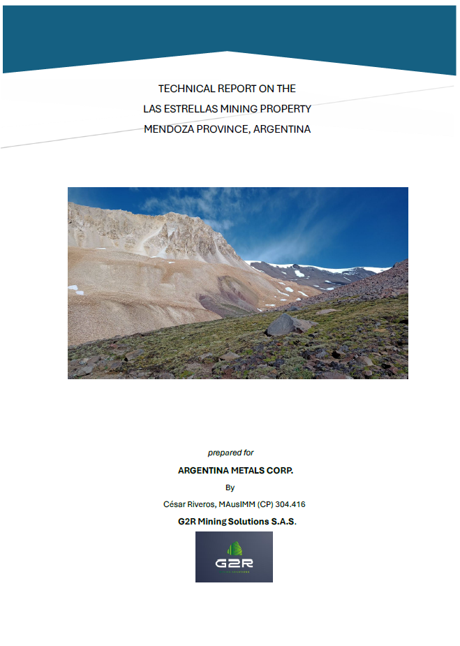 Technical Report on the Las Estrellas Mining Property Prepared for Argentina Metals Corp.by César Riveros, MAusIMM (CP) 304.416, G2R Mining Solutions S.A.S.